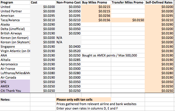 • See the cost to accrue/buy miles from each airline above - including promotions and third party vendor rates - Not all miles are created equally